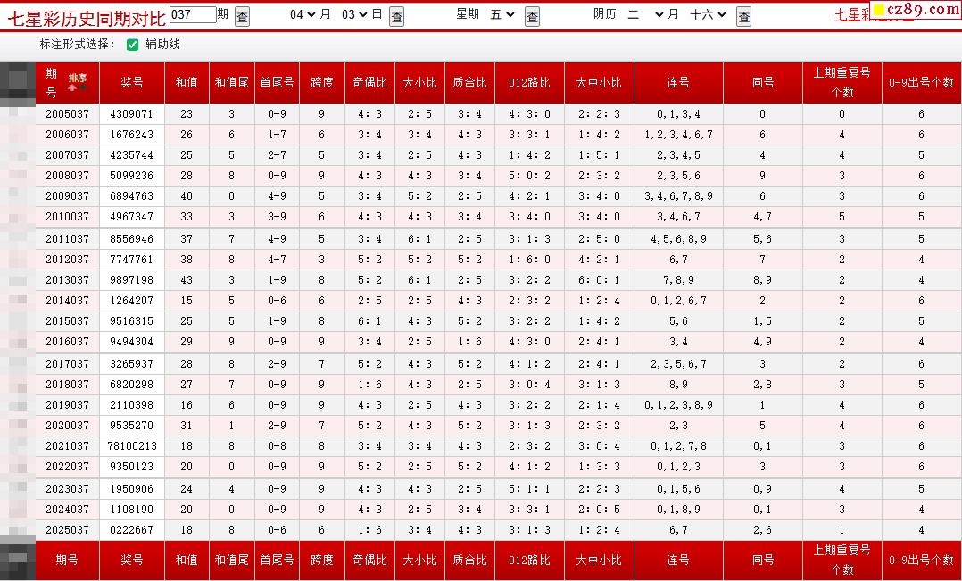 > 037期七星彩历史同期对比图